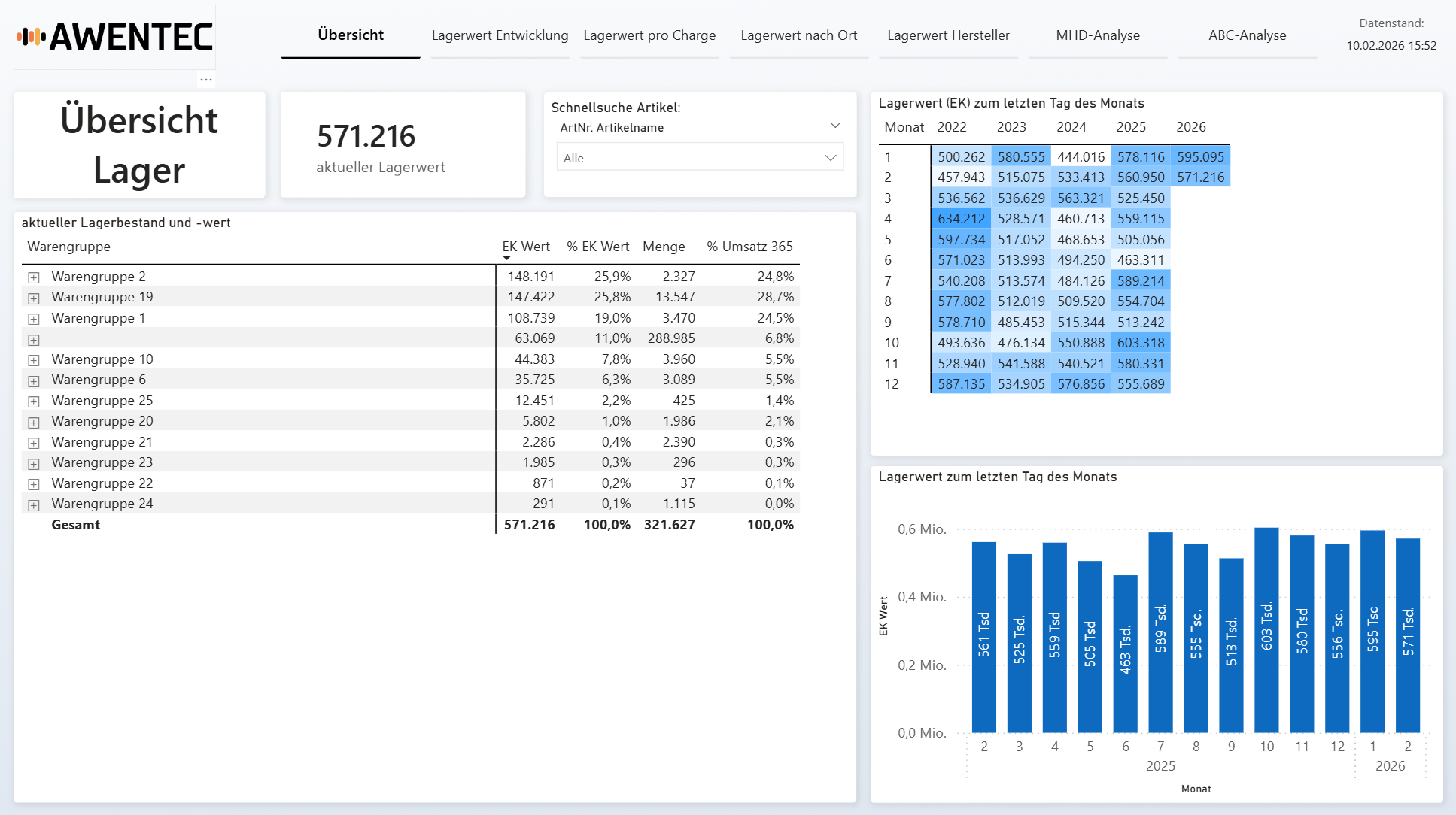 Alle wichtigen Lagerkennzahlen in einem Bericht – klar, strukturiert, auswertbar