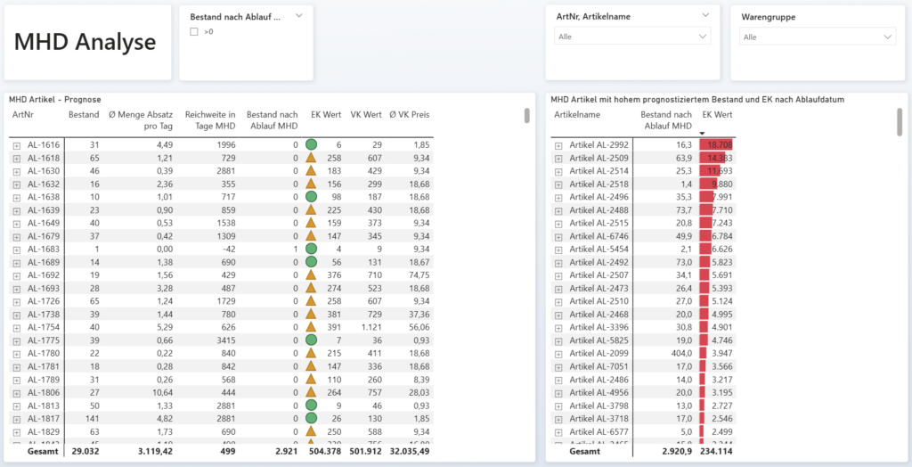 • Warenverluste durch ablaufende MHDs -> Der Bericht zeigt frühzeitig, welche Artikel bald ablaufen. So vermeiden Sie Abschriften und planen Abverkäufe rechtzeitig.