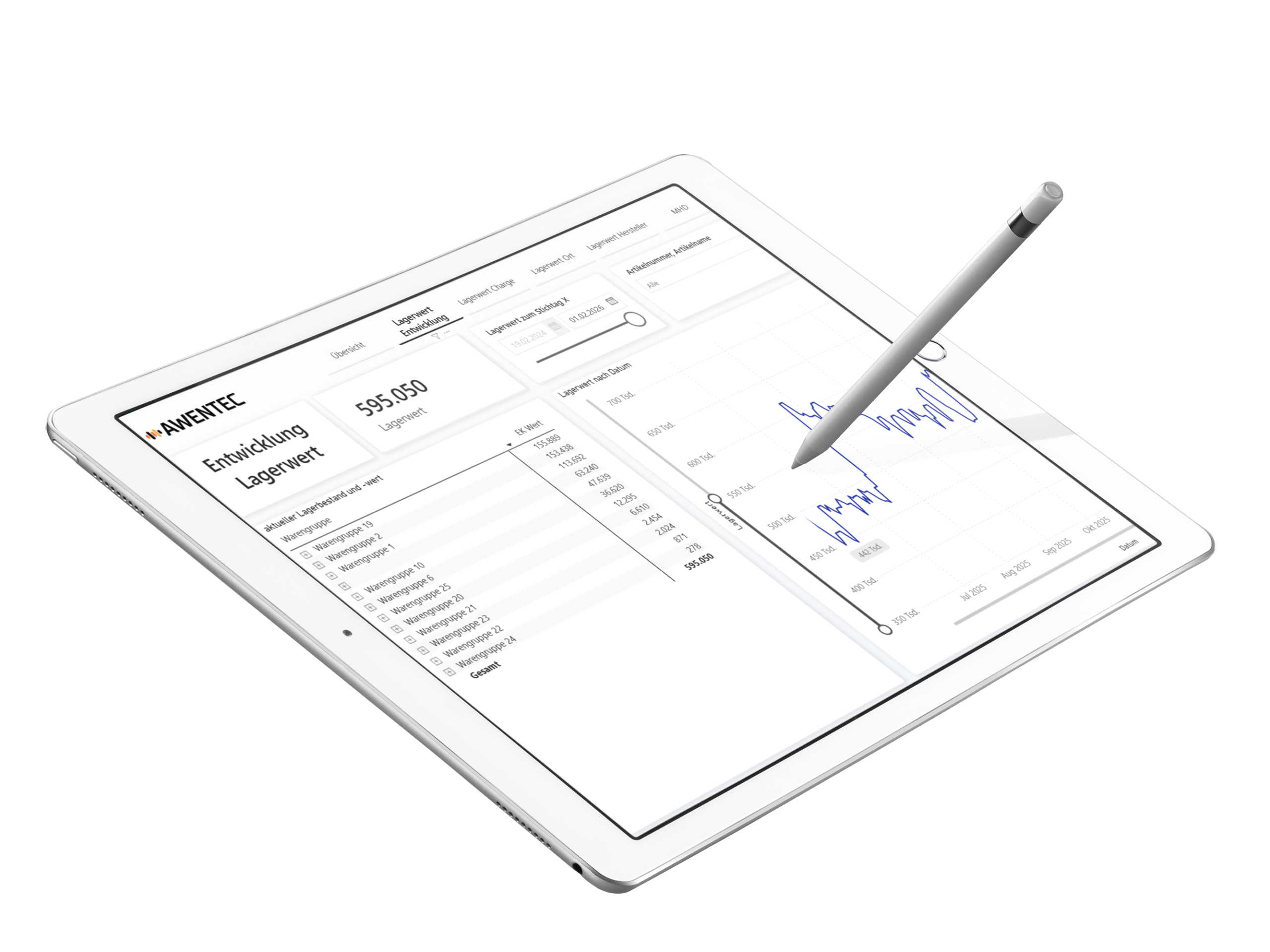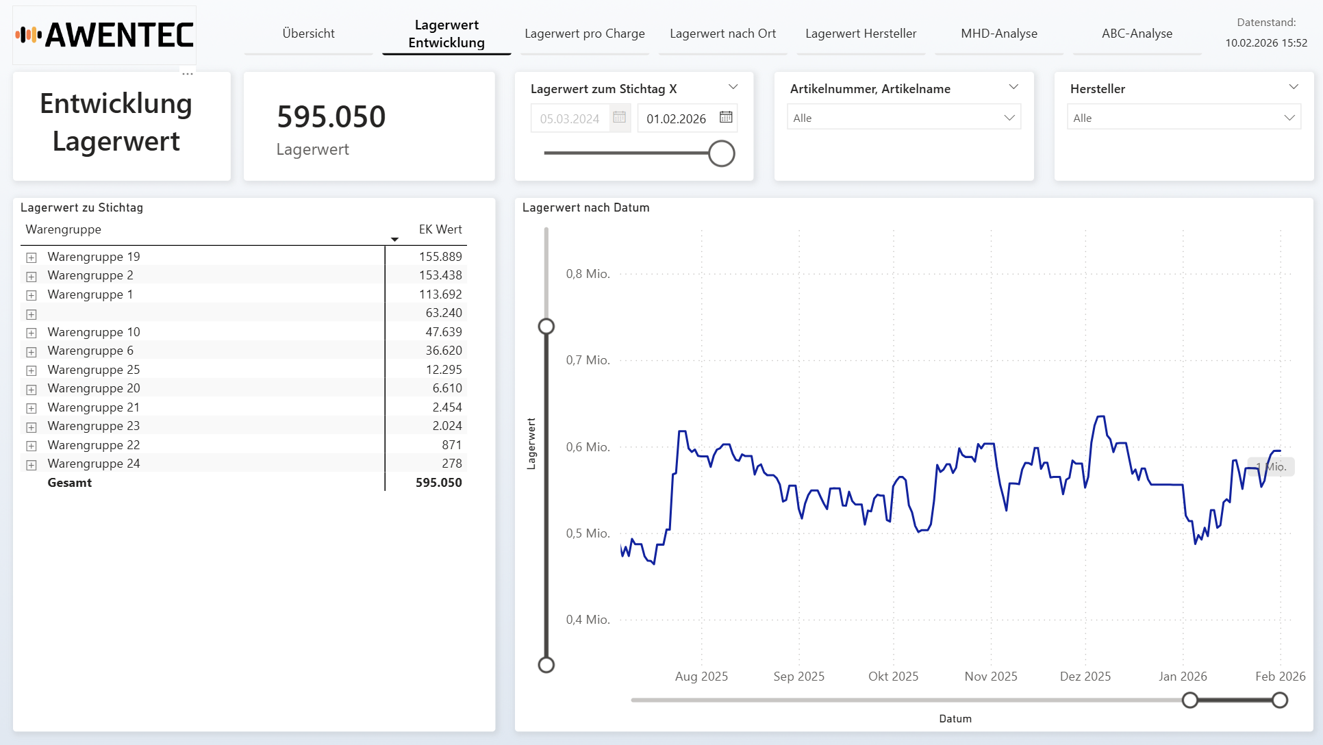 Mit der zeitlichen Entwicklung Ihrer Lagerwerte sehen Sie sofort, ob Ihr Kapital effizient eingesetzt wird. Identifizieren Sie Trends, saisonale Muster und Kostentreiber – und reagieren Sie frühzeitig.