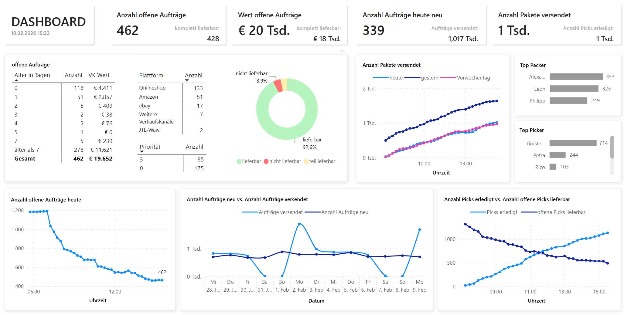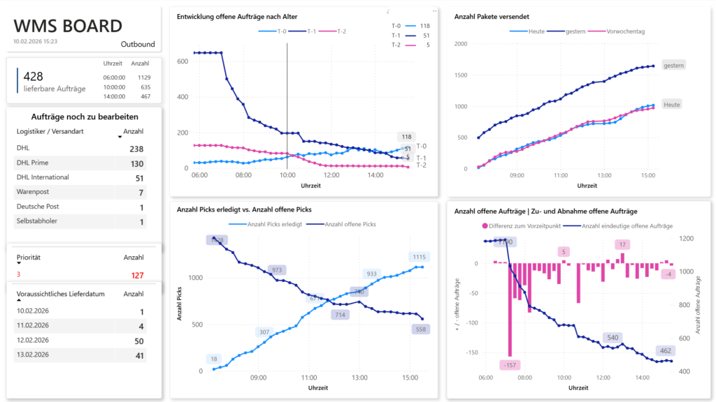 Echtzeit-Fokus: Volle Sichtbarkeit von Picks, Paketen und Auftragsrückständen.